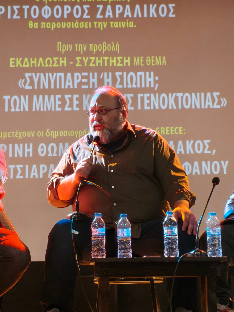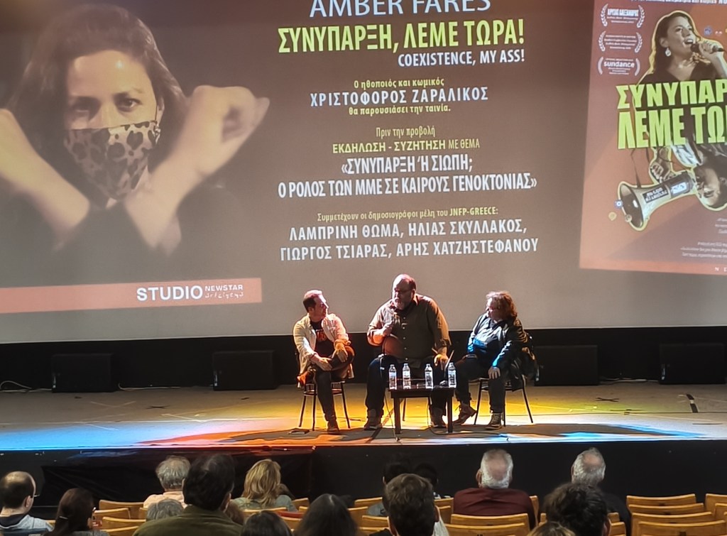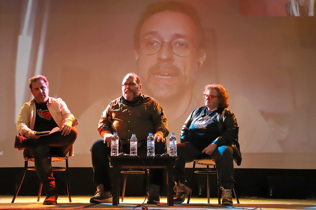 Την προβολή παρουσίασε ο δημοσιογράφος και σατιρικός δημιουργός Χριστόφορος Ζαραλίκος, ενώ ακολούθησαν παρεμβάσεις των δημοσιογράφων του Journalists’ Network for Palestine – Greece (JNFP-Greece), Λαμπρινή Θωμά, Ηλία Σκυλλάκο, Γιώργο Τσιάρα και Άρη Χατζηστεφάνου.