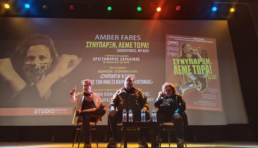 Με επίκεντρο τη γενοκτονία στη Γάζα, την προπαγάνδα και την ανάγκη συνέχισης του αγώνα για την υπεράσπιση της Παλαιστίνης, πραγματοποιήθηκε χθες, Πέμπτη 6 Νοεμβρίου, στο Studio New Star Art Cinema η πανελλήνια πρεμιέρα του πολυβραβευμένου ντοκιμαντέρ «CoExistence My Ass».